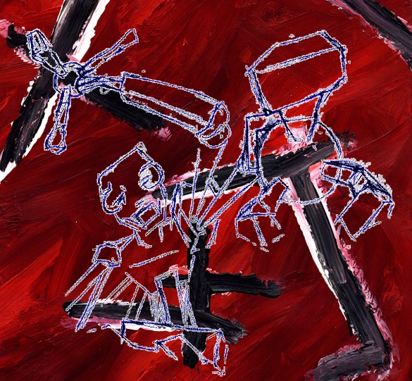 Scanned pencil sketch imposed on acrylic abstract work